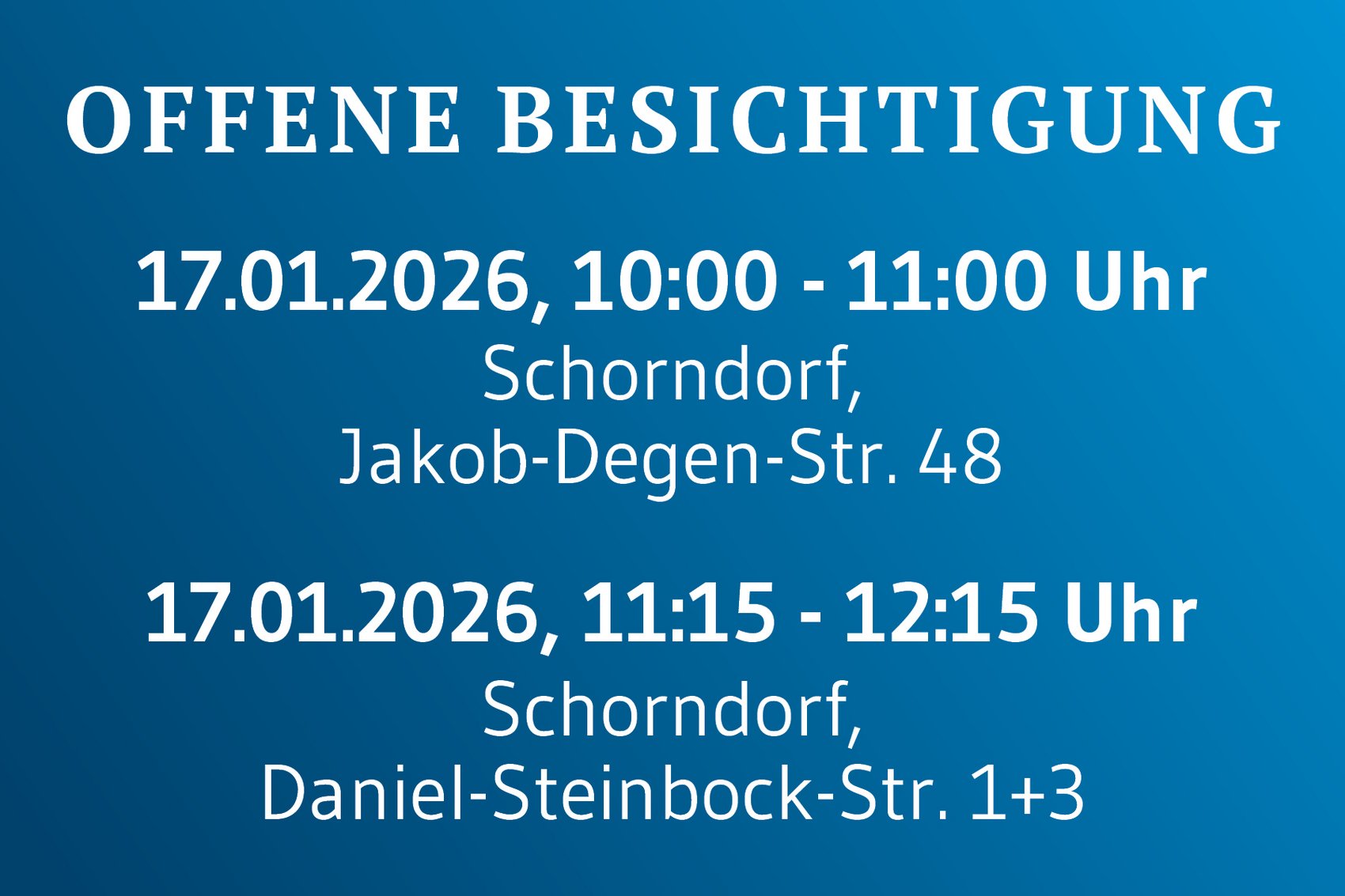 Wir laden Sie recht herzlich zu einer offenen Besichtigung ein und freuen uns auf Ihr Kommen!