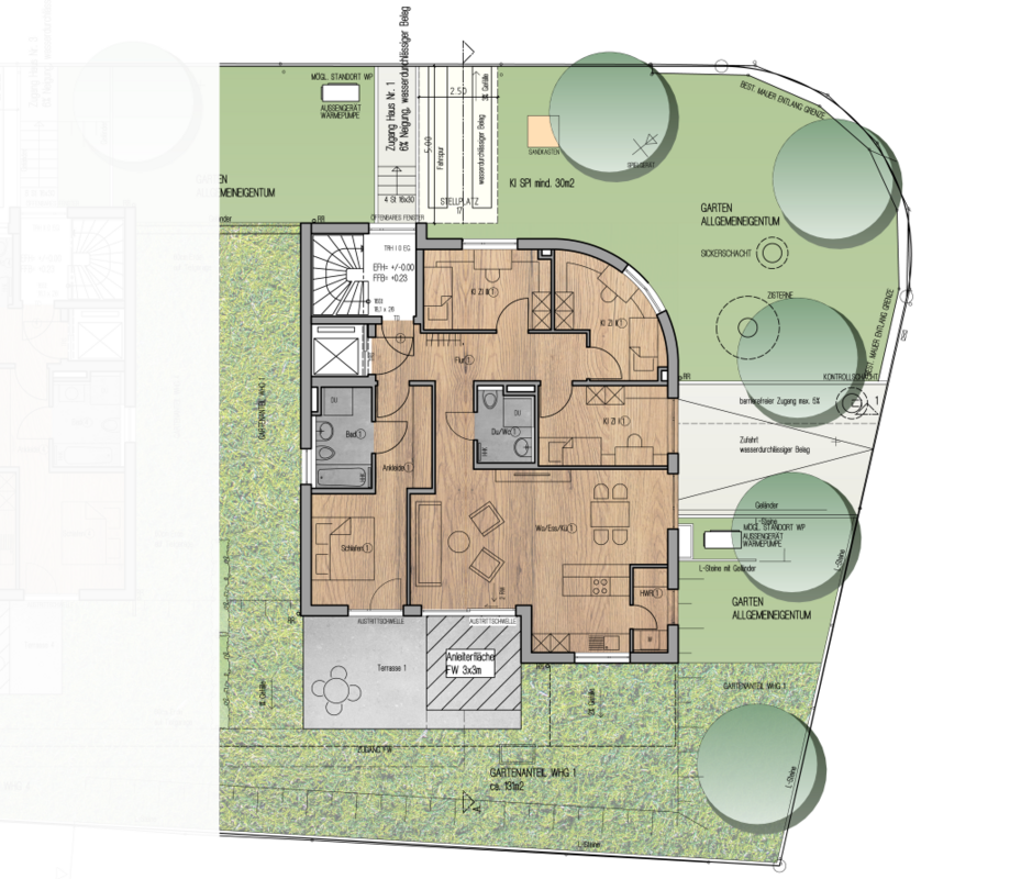 • Erdgeschoss mit Garten: Genießen Sie die Vorteile eines großzügigen Gartens – ideal für Familien mit Kindern oder für Personen, die die Verbundenheit zur Natur lieben.